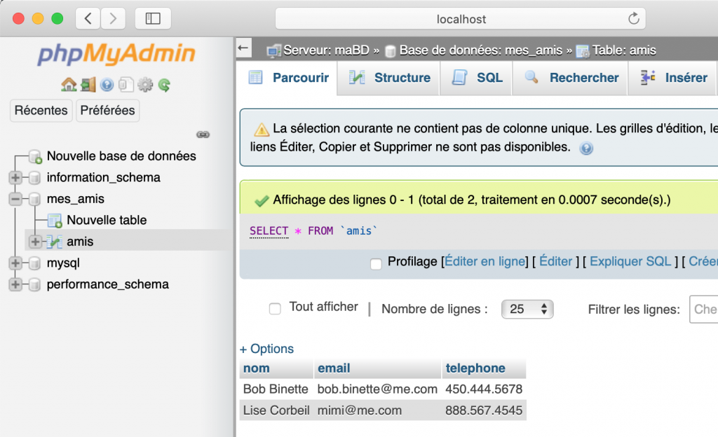 net-labo3.5phpmyadmin, crĂ©er une bd âmes_amisânom (var char 30)email (var char 30)telephone (var char 14)
