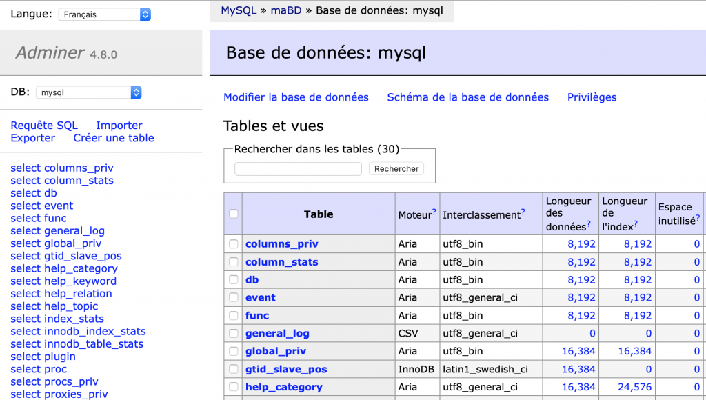 NOTE : La documentation de âadminerâ utilise une syntaxe dĂ©prĂ©ciĂ©e (