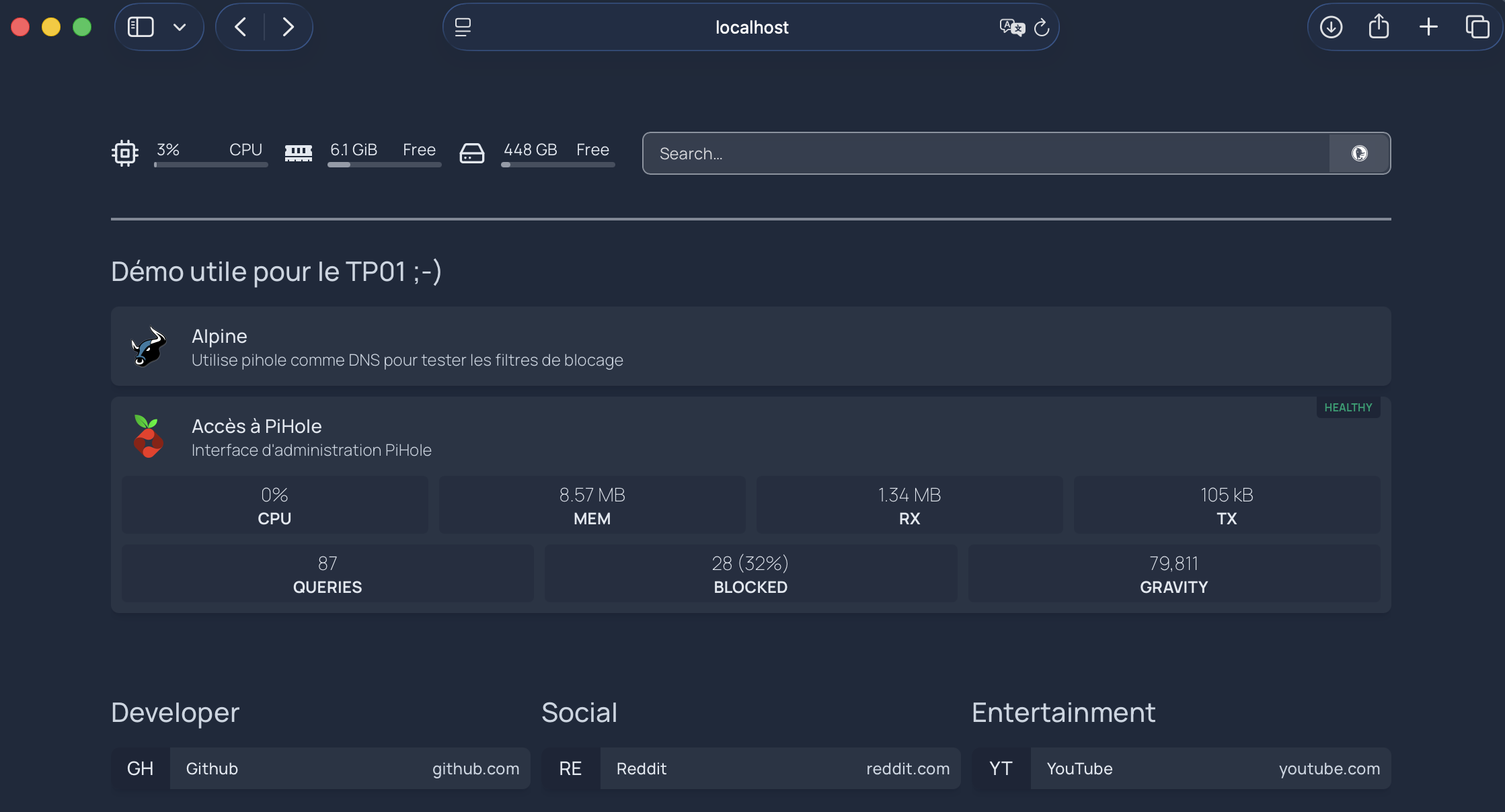 Homepage transforme une collection de services en un portail unifié et professionnel, parfait pour gérer efficacement une infrastructure personnelle ou professionnelle.